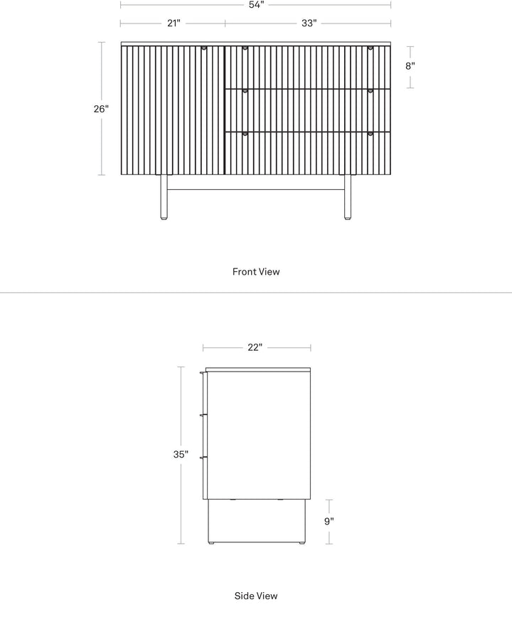 Murmur puts refined elegance front and center. Fluted wood creates a continuous pattern of textural delight. Small sandcast brass pulls nest in the grooves for subtle sophistication. Convex legs and soft-close drawers complete the pretty picture. Available in a whole slew of equally stunning shapes and sizes.