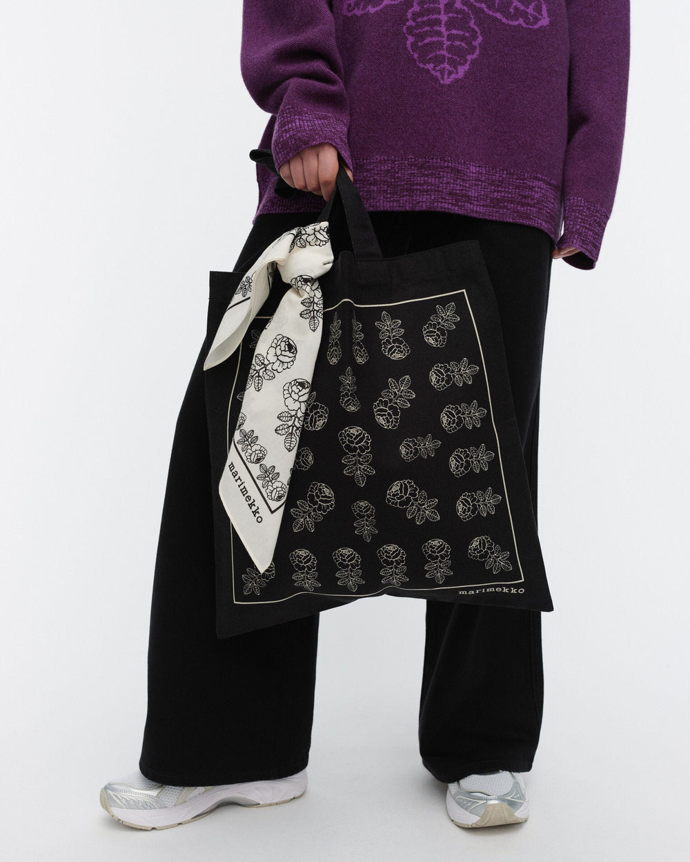 The Astrilli bandana is made of cotton, and it features the Vihkiruusu pattern.