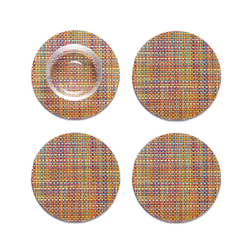 A plush, protective layer of our BioFelt® backing cushions these durable yet refined coasters. Elegantly banded in sets of four, they are ready for gifting. Made from recycled fibers, the cushioned base layer protects the underlying surface from moisture. Each coaster set includes four coasters in a single color. Suitable for indoor and outdoor use. Made in the USA. Free of phthalates.