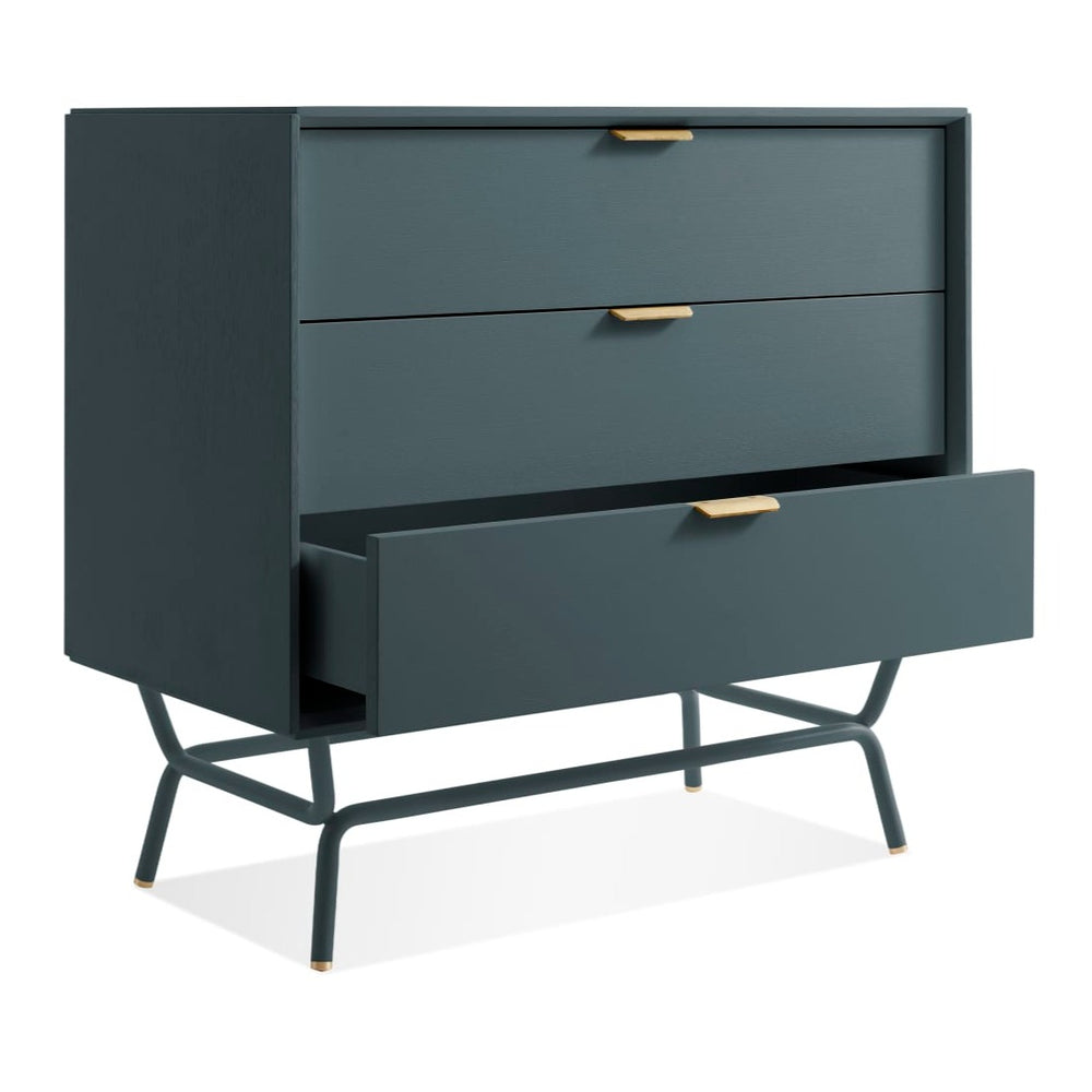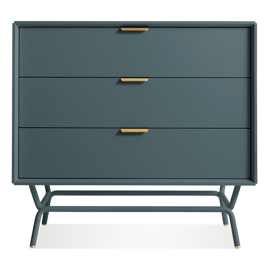 ​Give simple a lift. A powder-coated steel base props up a refined, unassuming silhouette. Antique brass pulls keep it pretty. Soft-close drawers keep it quiet. Available in a bevy of sizes to stylishly store your unmentionables and mentionables. All worth mentioning.