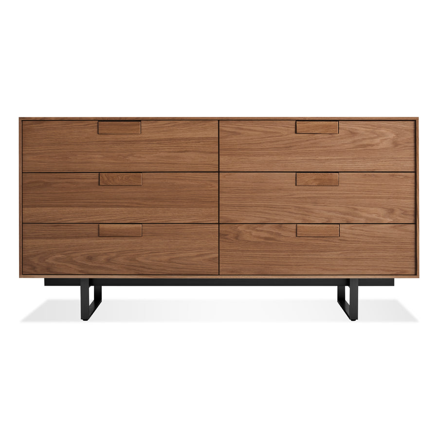 An elegant and refined approach with thin edges and thoughtful proportions. Subtle and inventive drawer pulls smoothly open and close dresser drawers with contrasting FLW red interior. Case rests on an alloy-plated stainless steel base. Series Eleven. When ten just isn't quite enough.