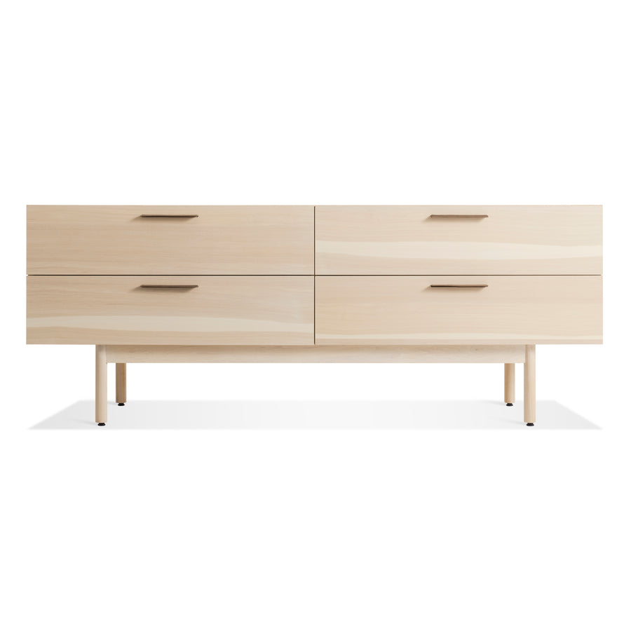 Layers of clean details. Warm wood and full grain leather pulls add storage panache and practicality to the bedroom, living room or dining room.