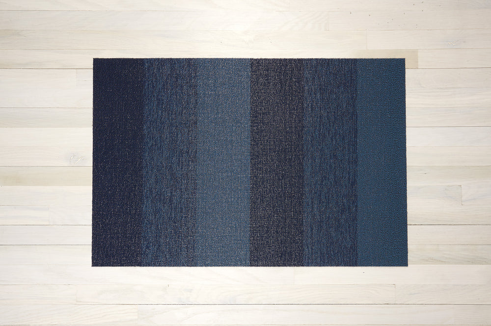 Two distinct solid colors come together to form a heathered middle ground in this tufted mat. The doormat version is a horizontal tricolor that is doubled for the big mat (six stripes), while the equally sized bands span the width of the utility mat (six stripes) and runner (twelve stripes). With a backing of hardworking vinyl, Shag mats are ideal for bathrooms, outdoor terraces, pool areas, and entryways. Offered in four sizes. Good in all weather. Quick to dry. Resistant to mold, mildew, and chlorine.