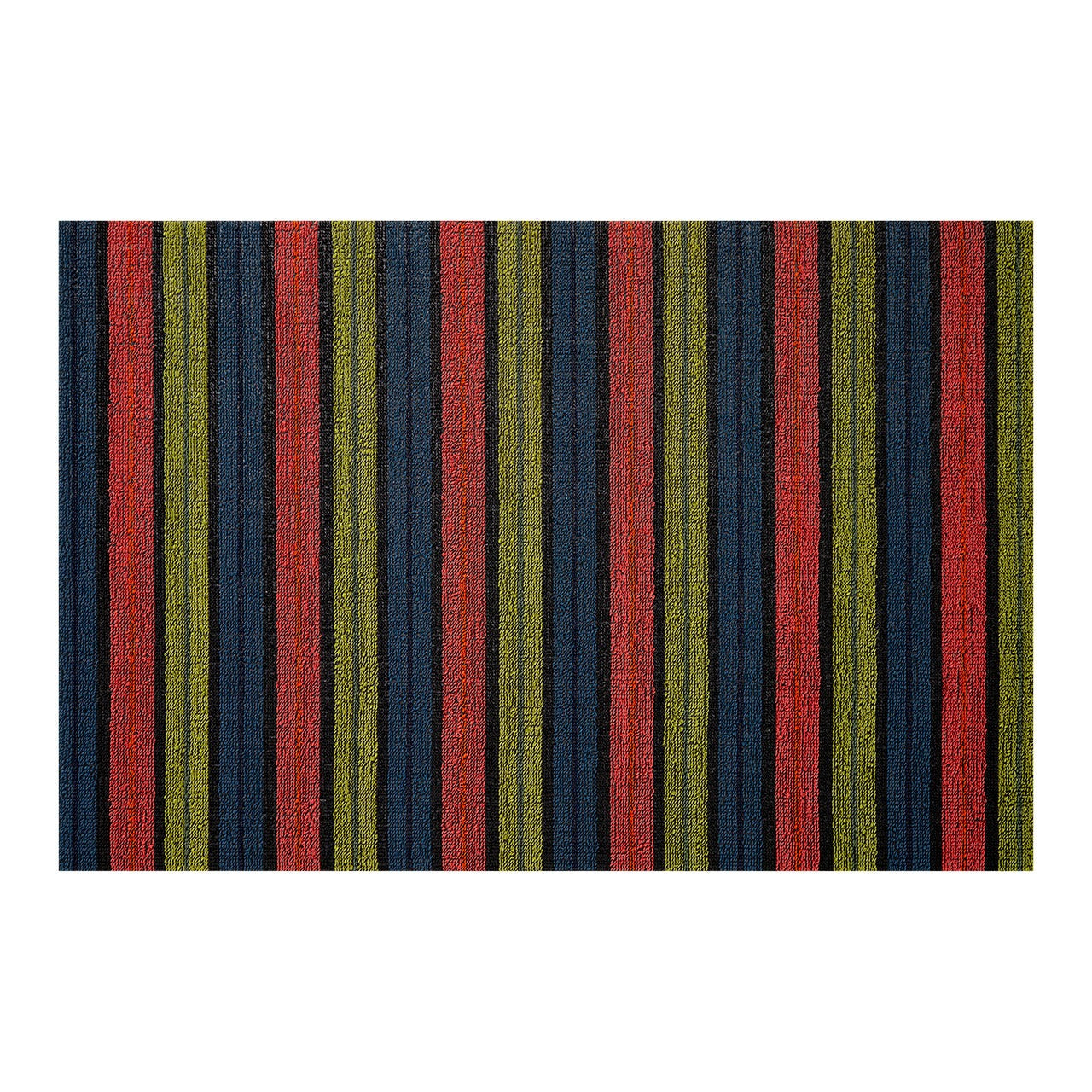 A dynamic balance of bold hues, rich texture, and graphic precision, Ribbon Stripe traces bands of color with fine lines. Harmonized by the neutral hues that frame them, these stripes within stripes offer a new way to incorporate brights into a broad range of spaces and styles. With a backing of hardworking vinyl, Shag mats are ideal for entryways, kitchens, bathrooms, outdoor spaces, and pool areas. Resistant to mold, mildew, and chlorine.