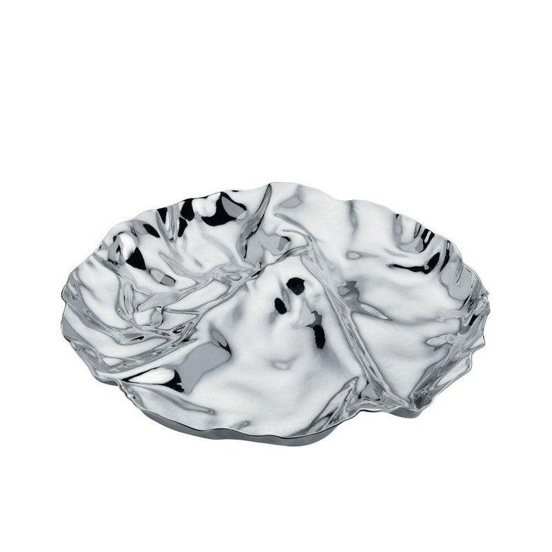 Two-section hors-d'oeuvre dish in mirror-polished 18/10 stainless steel.