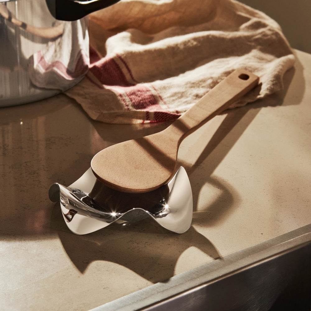 Sinuous shapes for an elegant, functional object: BLIP is the spoon rest designed to cradle spoons and ladles of different lengths and sizes. The name alludes onomatopoeically to the wave from a drop in water.