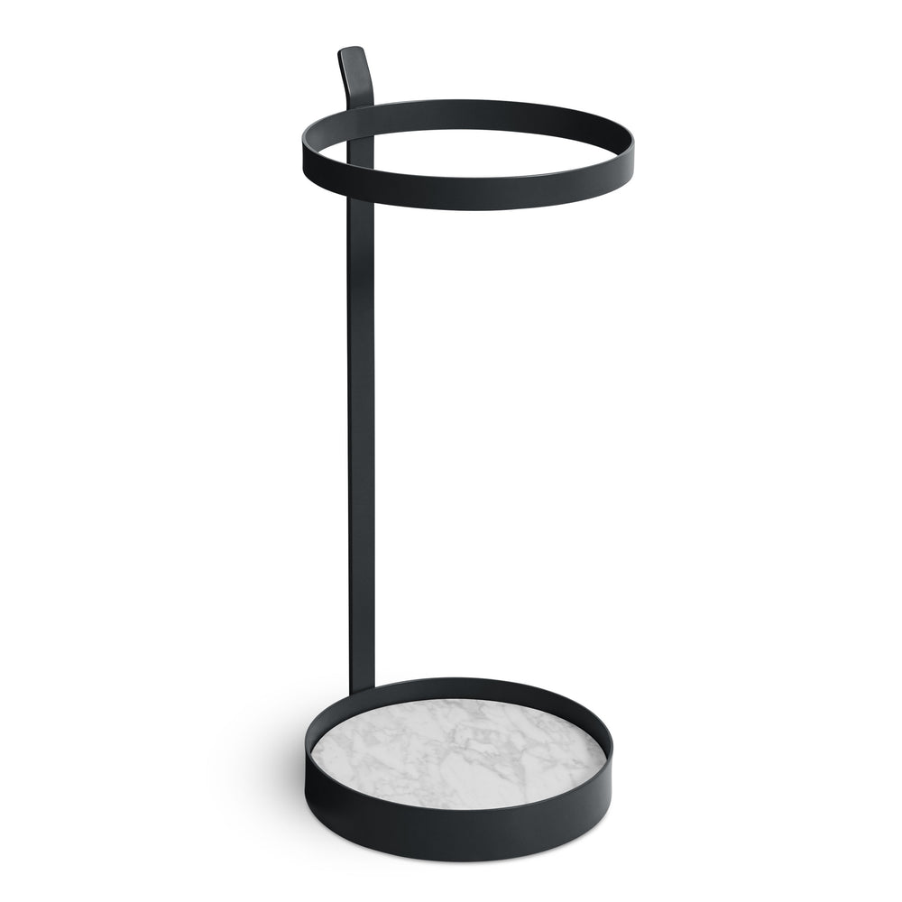 Perfectly postured steel is ready to wrangle the drippy or dry umbrella. Pitter Patter’s top tab provides a spot to hang compact style umbrellas and a marble inset base keeps this entry necessity stable and lovely.