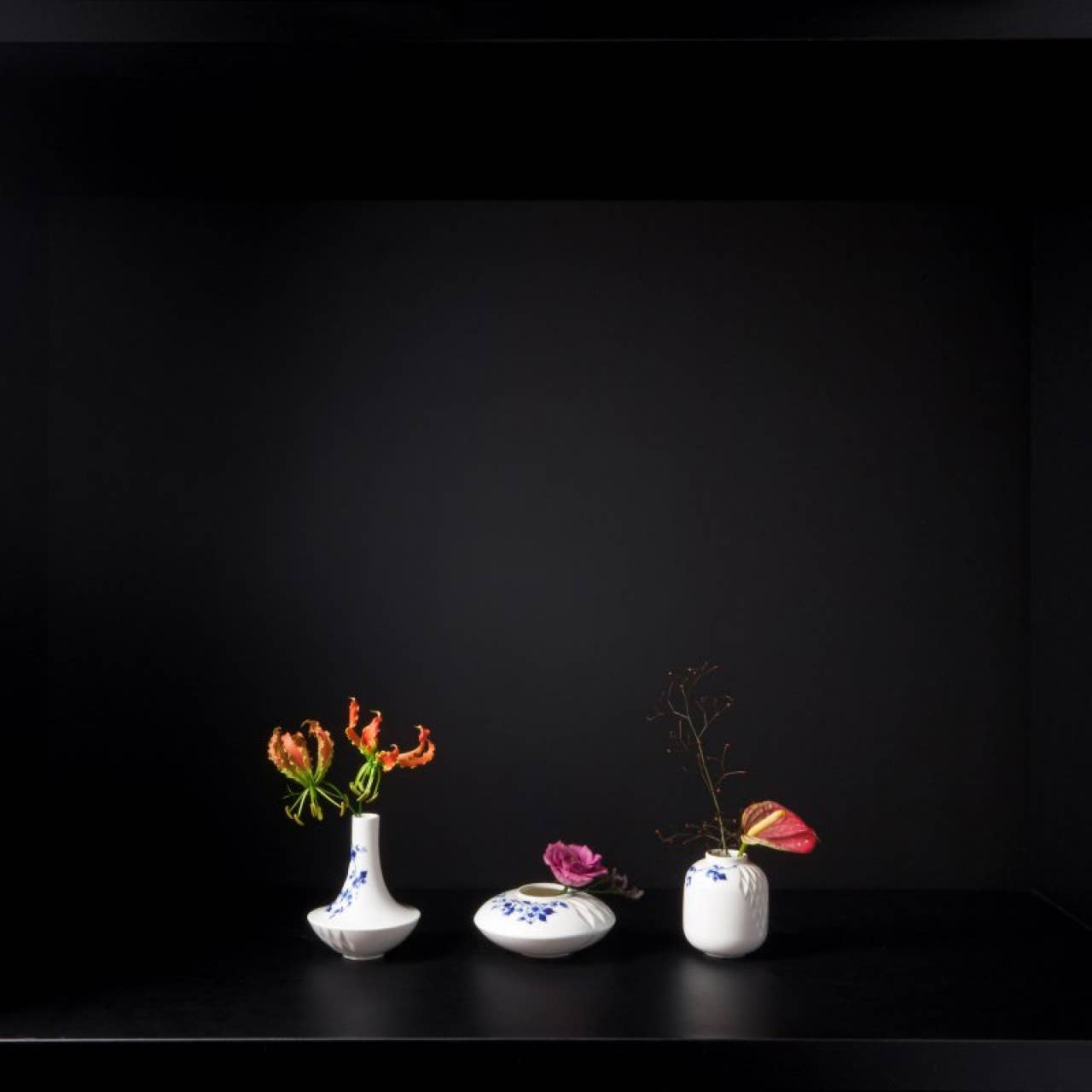The ceramic traditions of Asia and the Netherlands are inextricably linked. This is reflected in the Blue Fold collection by designer Romy Kühne. What she has created is a special fusion of Japanese folding art Origami and traditional Dutch Delft blue. In addition to a set of tableware, she has also designed a series of vases that can be mixed together nicely.