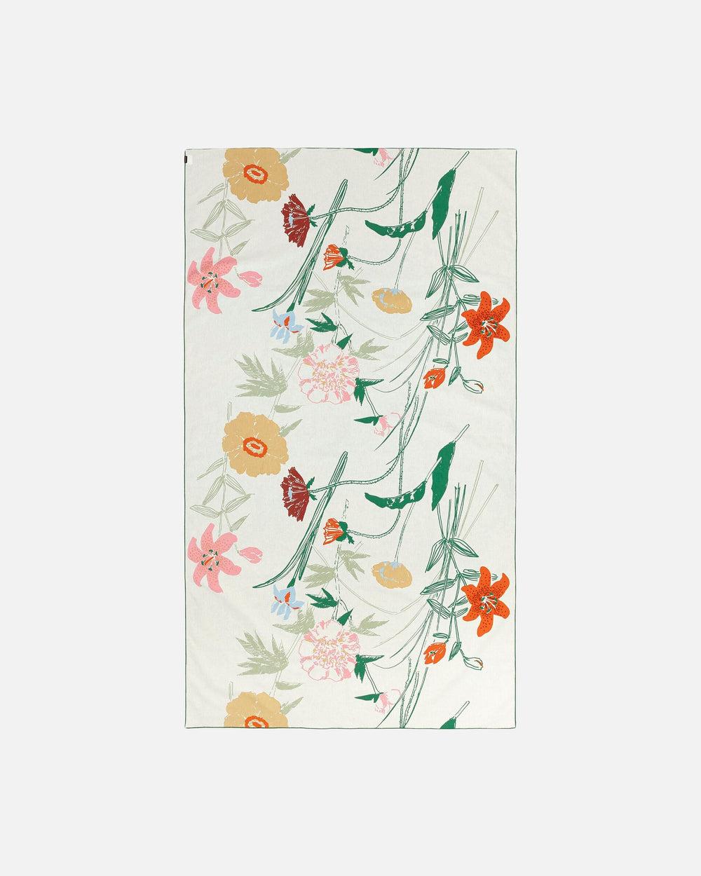 This cotton tablecloth features the Puutarhakutsut pattern, which is printed in Helsinki. The tablecloth has a green picot edge finish.