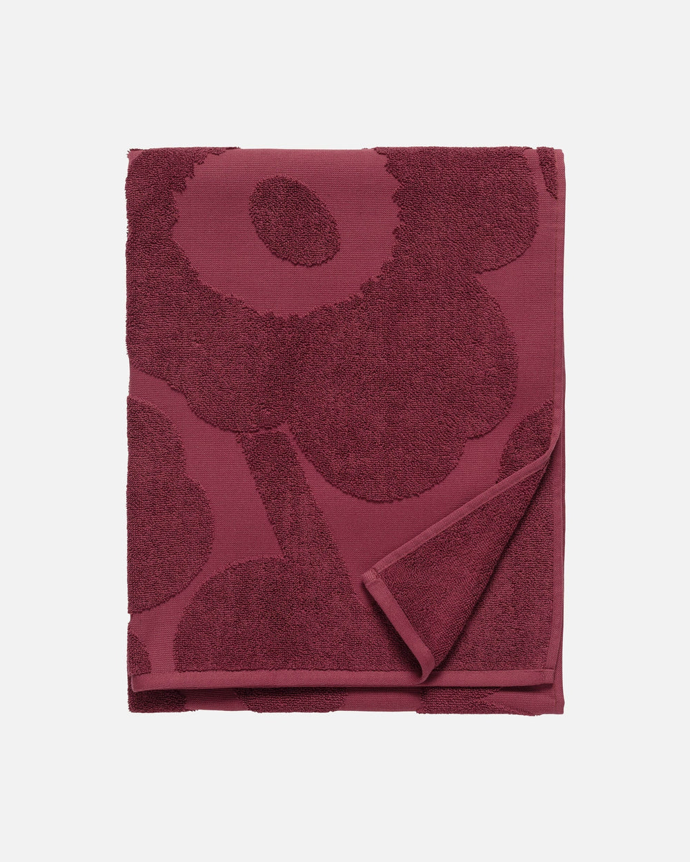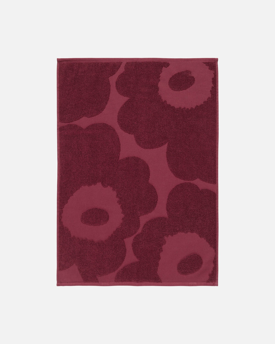The embossed Unikko pattern hand towel is made of organic cotton terry. The reverse side of the towel is even.