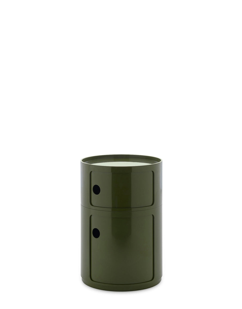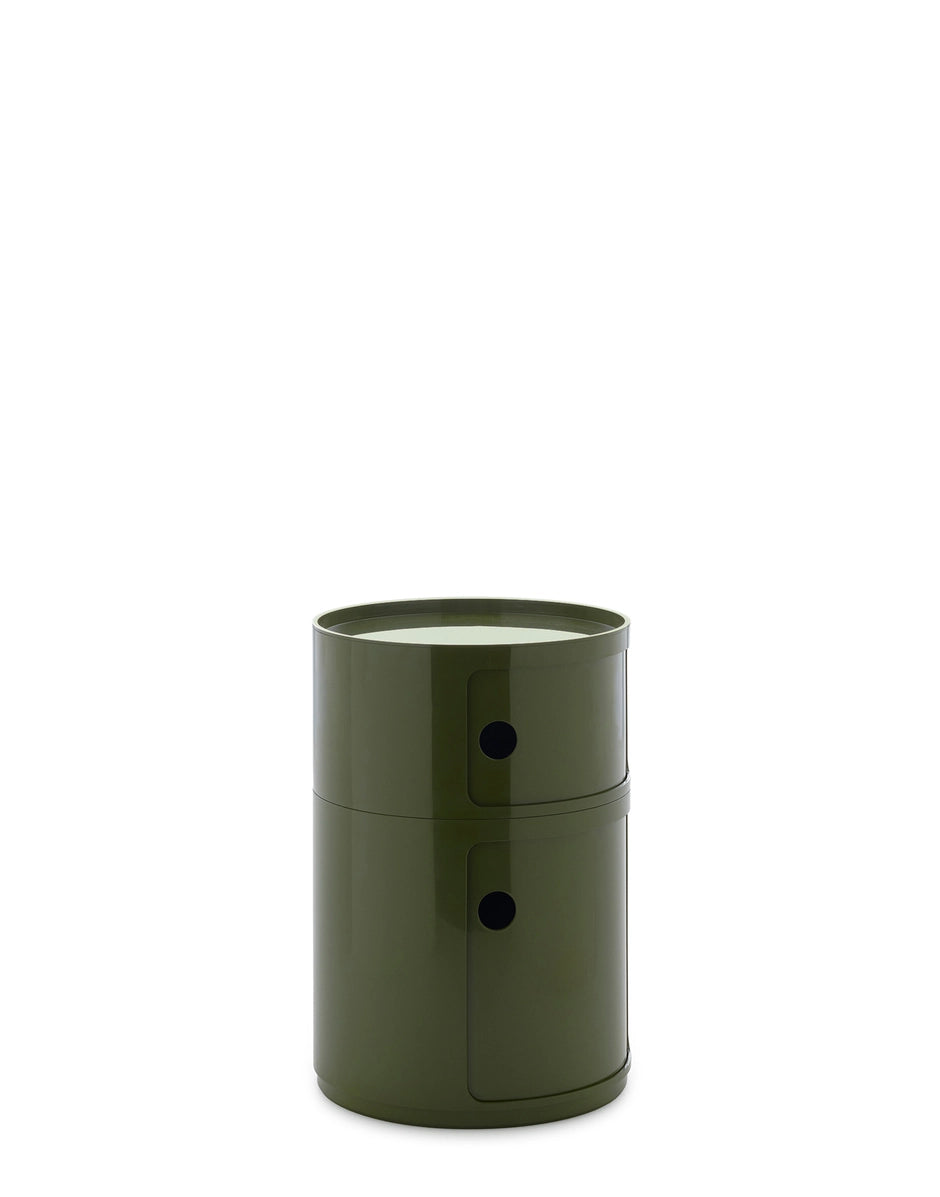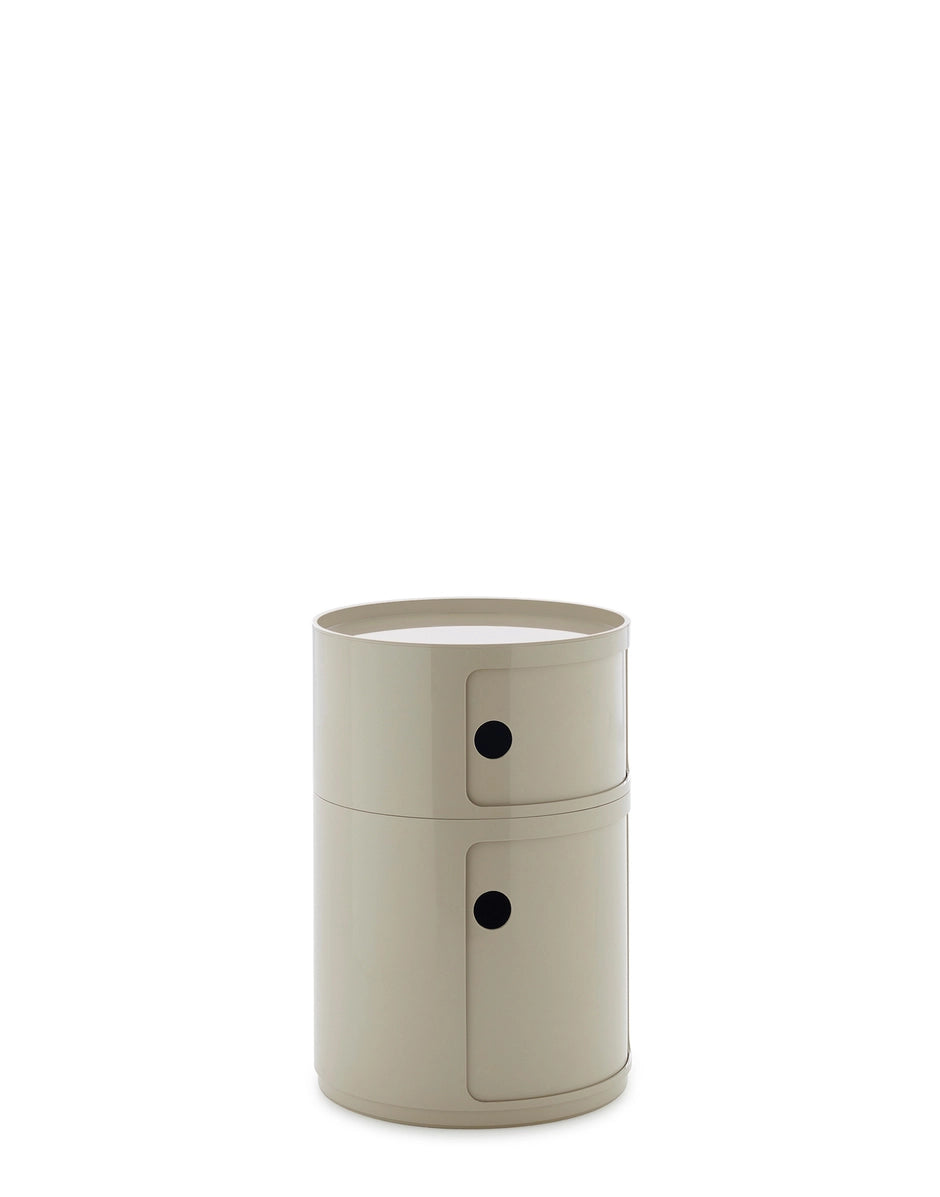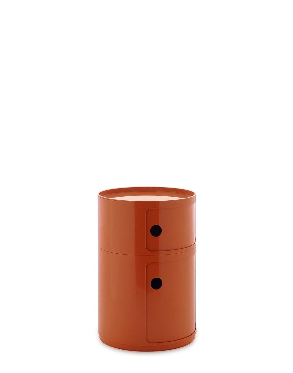 The 42 cm round version of Anna Castelli Ferrieri’s I Componibili now comes in an all-new look thanks to a new industrial print that enhances both quality and appearance. There are more colours to choose from too, with the addition of nuances already available for the 32 cm size complemented by original new shades that blend contemporary taste with elegant references to the past. This version of I Componibili is the latest technical evolution of a classic from the Kartell catalogue. Available in Bordeaux, Taupe Grey, Orange, Petroleum Blue, Green and White.