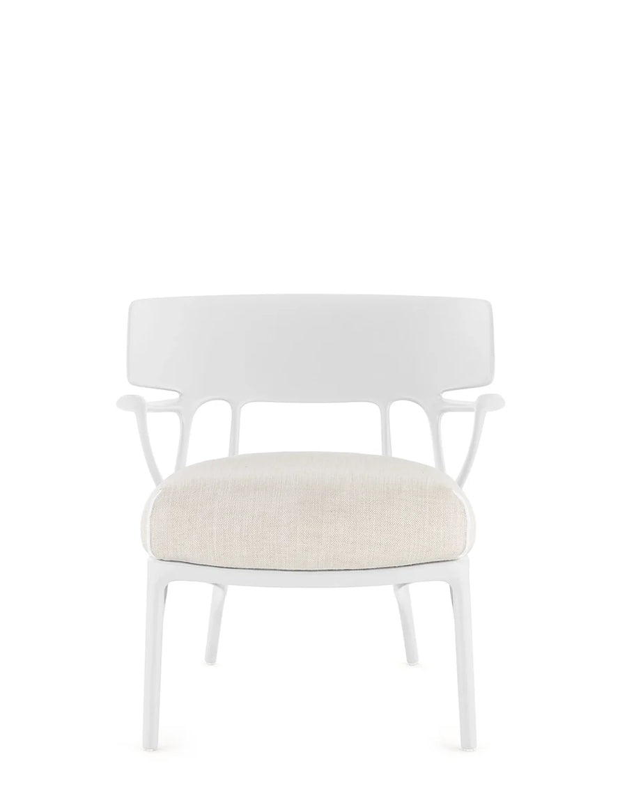 A.I. LOUNGE is the new armchair from the A.I. family that combines sustainable materials and comfort with a graphic design that looks to the future and well-being in our living spaces. An armchair for the living room in which the contours, a distinctive feature of the collection, are combined with maximum seating comfort. Available in white, black and grey.