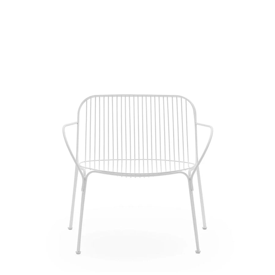 HIRAY takes metal, one of the most important materials for the greening of the Kartell catalogue, and uses the welded wire process to shape it. The result is an essential and functional product that is nevertheless rich in emotion. Metal wires form well-defined yet lightweight structural parts of the collection’s chair, chair with arms, bistro table, armchair, divan and side table. The various articles come in white, Bordeaux, black and green.