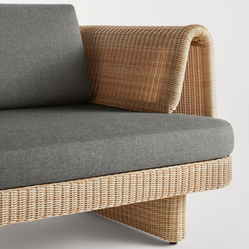Curvy, comfy, convivial. Loophole sets the stage for long days lounging or heads tossed back late into the night. All-weather rattan wraps around a low-profile frame for a look that’s modern, yet classic. Cushions made with high-performance Sunbrella® fabric that’s both mildew and fade-resistant add yet another layer of ease.