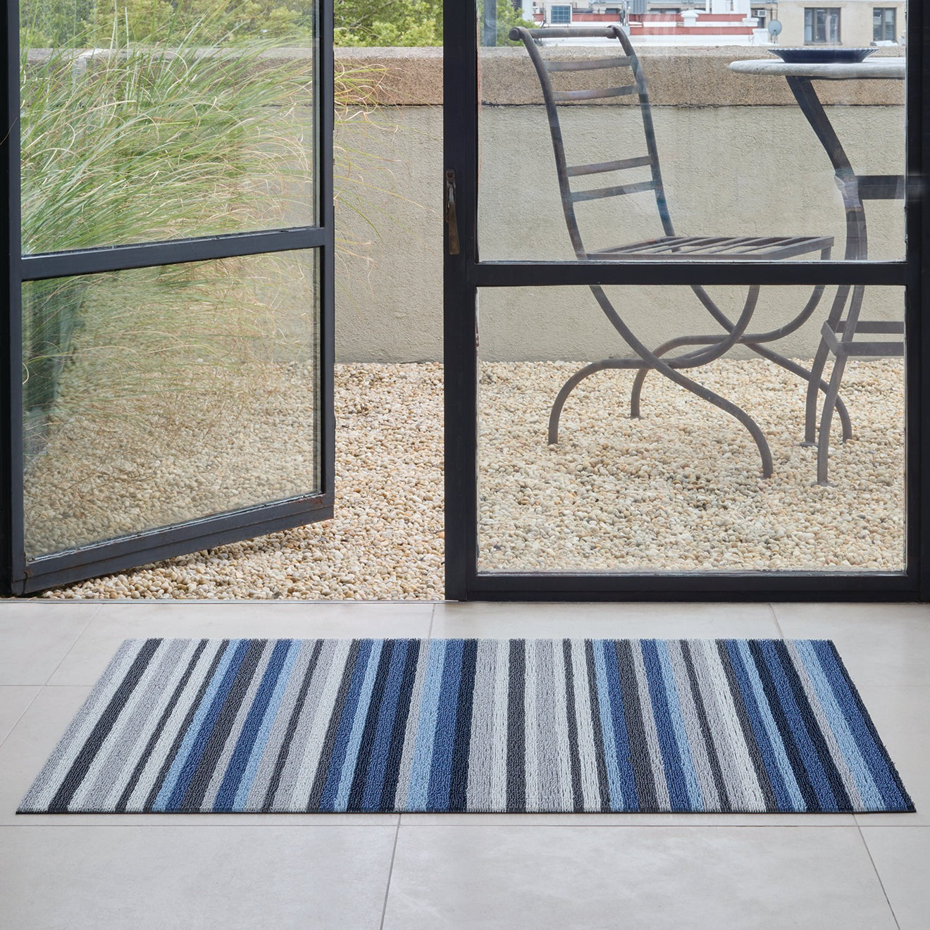 Inspired by landscapes and seascapes, Horizon Stripe encompasses a dynamic range of colour, from neutrals to bold hues, tapping into the power of narrow, rhythmically repeated lines to convey motion. With a backing of hardworking vinyl, Shag mats are ideal for doorsteps, entryways, bathrooms, mudrooms, patios, pool areas, and beyond. Offered in four sizes: doormat, utility mat, big mat, and runner. Resistant to mold, mildew, and chlorine.