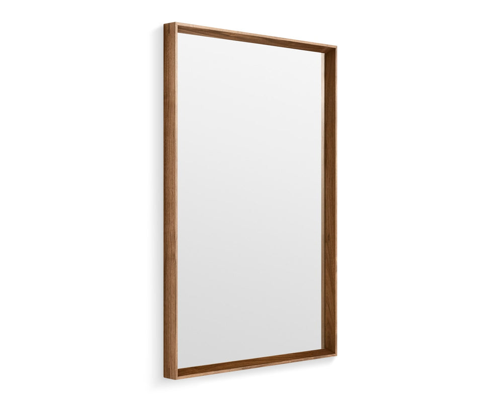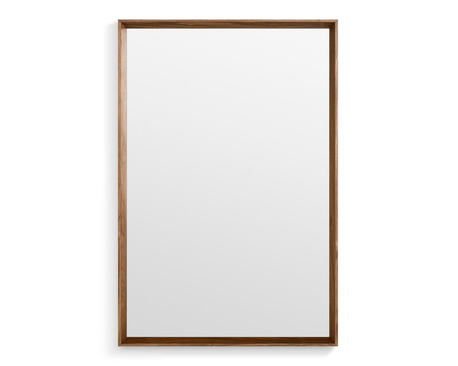 Solid walnut or white oak frames a simple mirror that complements every ensemble. Hang horizontally, vertically, this way, that way or lean confidently against a wall for a laidback, too-cool-for-school approach. Also available in a small size.