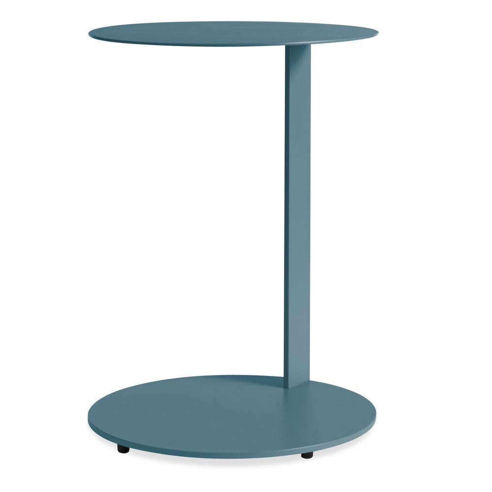 A striking slim spine of solid powder-coated steel supports a cantilevered round tabletop and base. Couple the well-tuned Note Large Side Table with sofas, lounges and beds to create a floating workable surface in a pinch. Note Side Table and Note Tall Side Table also available.