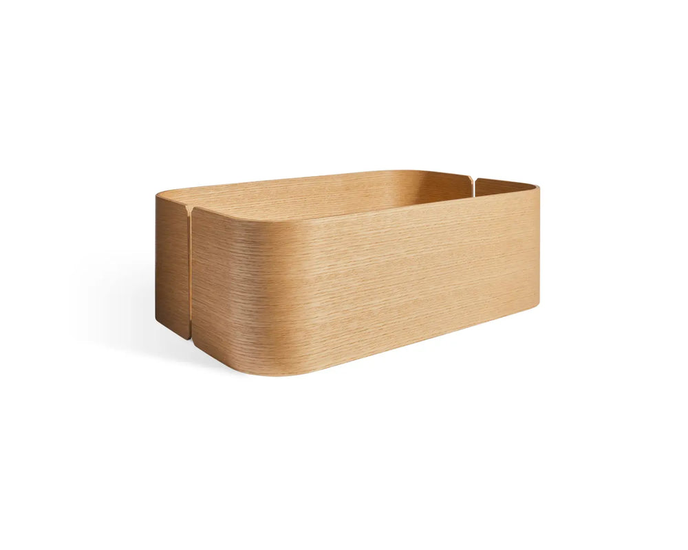Organize your socks, sweaters and scarves with gusto. Soft, rounded white oak bins add warmth and functionality to your storage situation. Pair with Garden Party Shelving System. Sold separately.