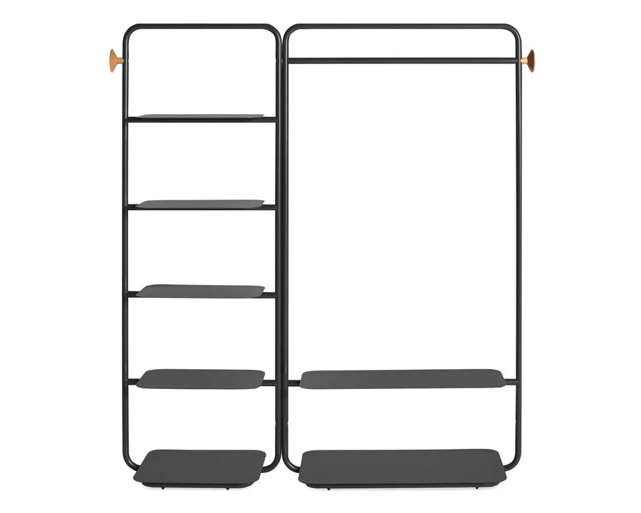 Show your clothes a good time. Garden Party is the perfect storage for people who have no storage. Durable powder-coated steel creates a clean and quiet spot to stage outfits or showoff your full regalia. Solid white oak knobs provide an extra spot to hang accessories. Garden Party Storage Box sold separately.