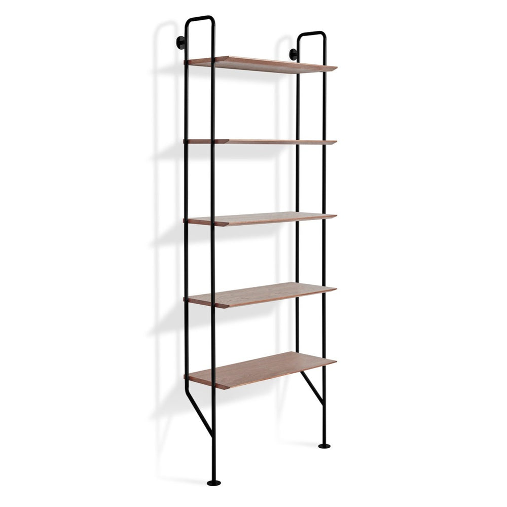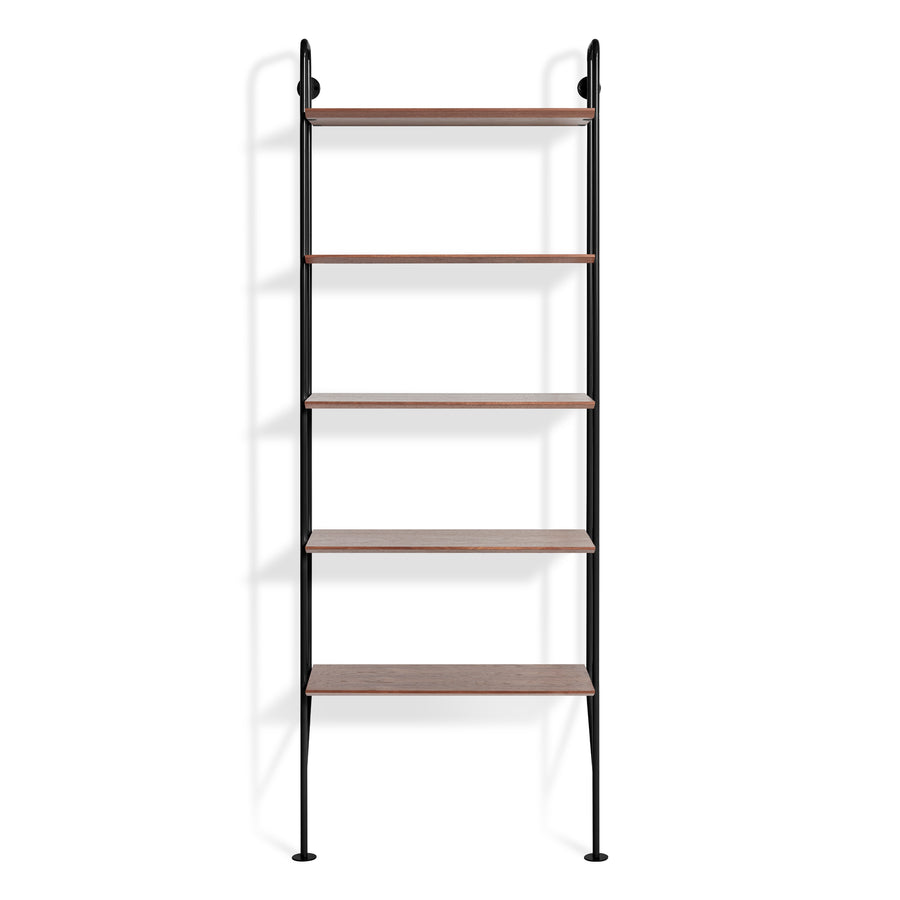 Powder-coated steel uprights and wood shelves in multiple finish options make you the master of your own book case destiny. Single units stand alone. Gang up multiples to create mass appeal with the Hitch Add-on Bookcase.