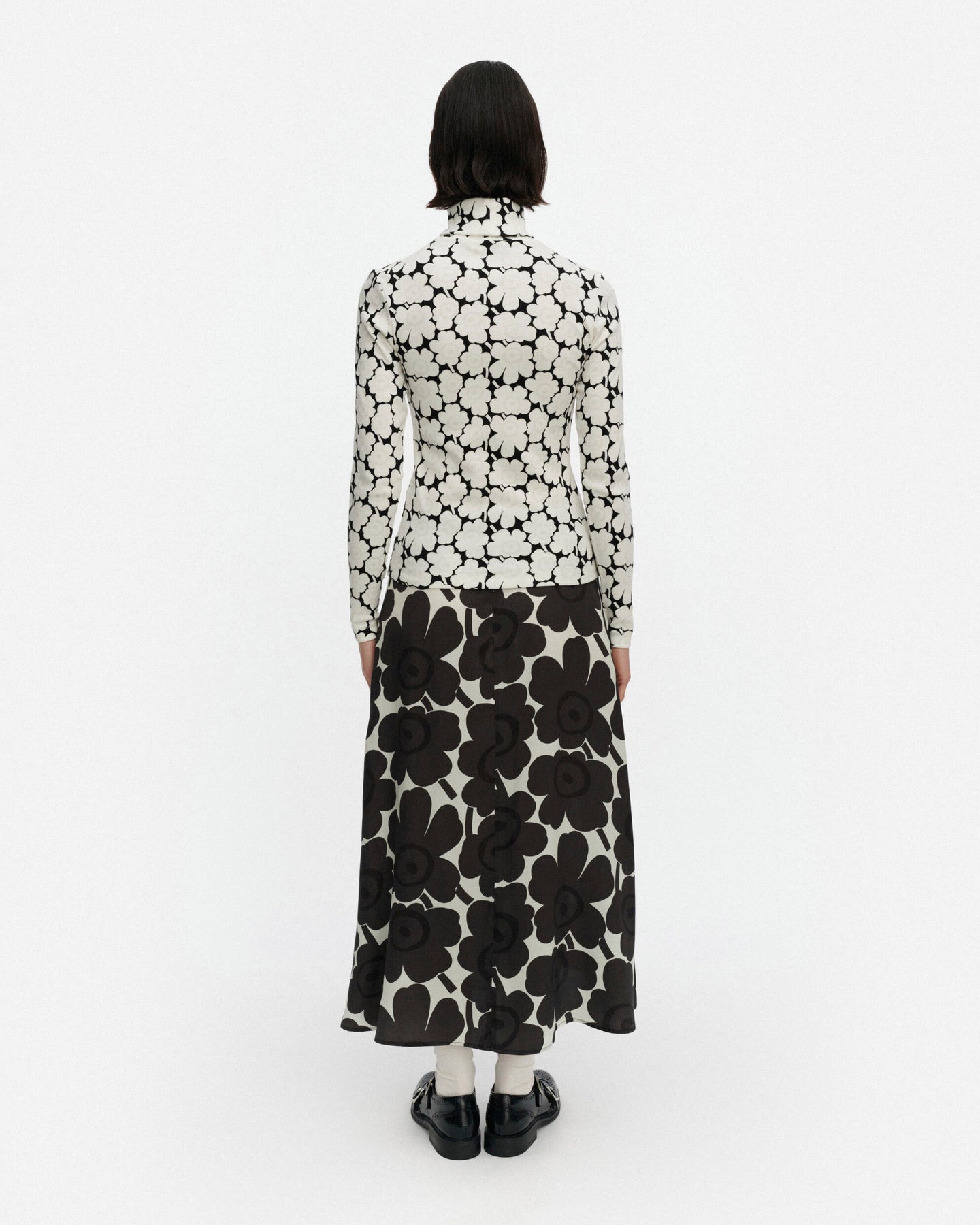 The Emali turtleneck top is made of cotton rib jersey, and it has a skinny fit. The long-sleeved top is printed in the Unikko pattern, and it has a turtleneck collar that is folded over twice. .