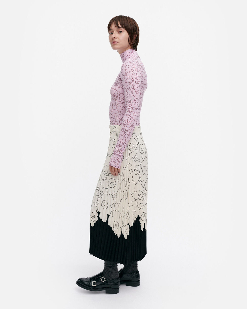 The Solmia rib jersey turtleneck has a straight, skinny fit and it features the Piirto Unikko pattern. The turtleneck has extra-long, slim sleeves.