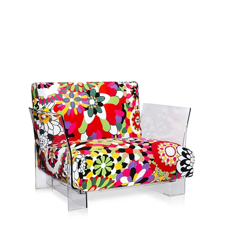 Pop is the modular sofa with evanescent profiles characterised by large seat and backrest cushions which make it soft and comfortable. The Pop collection is completed by an armchair with the same features.