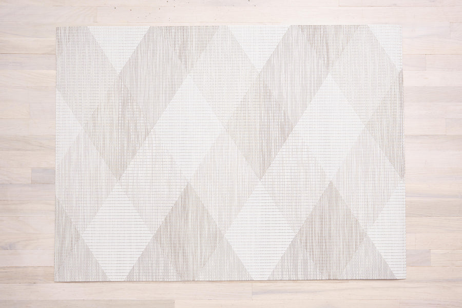 Exploring the interaction of shape, colour, and texture, this jacquard weave is especially expansive in scale. Layered forms overlap to create a central diamond surrounded by triangles, making each placemat at once dynamic and refined. Suitable for indoor and outdoor use.