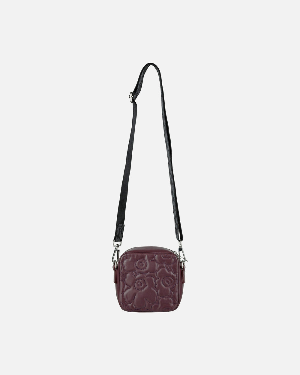The Baby Gratha shoulder bag is made of padded leather, and it features the quilted Unikko pattern. The soft nappa leather develops a patina over time. The bag has an adjustable and detachable, jacquard knit Unikko pattern shoulder strap, which is made of recycled polyamide. The bag has a zipper closure with one Unikko puller and a small zipper pocket on the inside. The inside of the bag is lined.