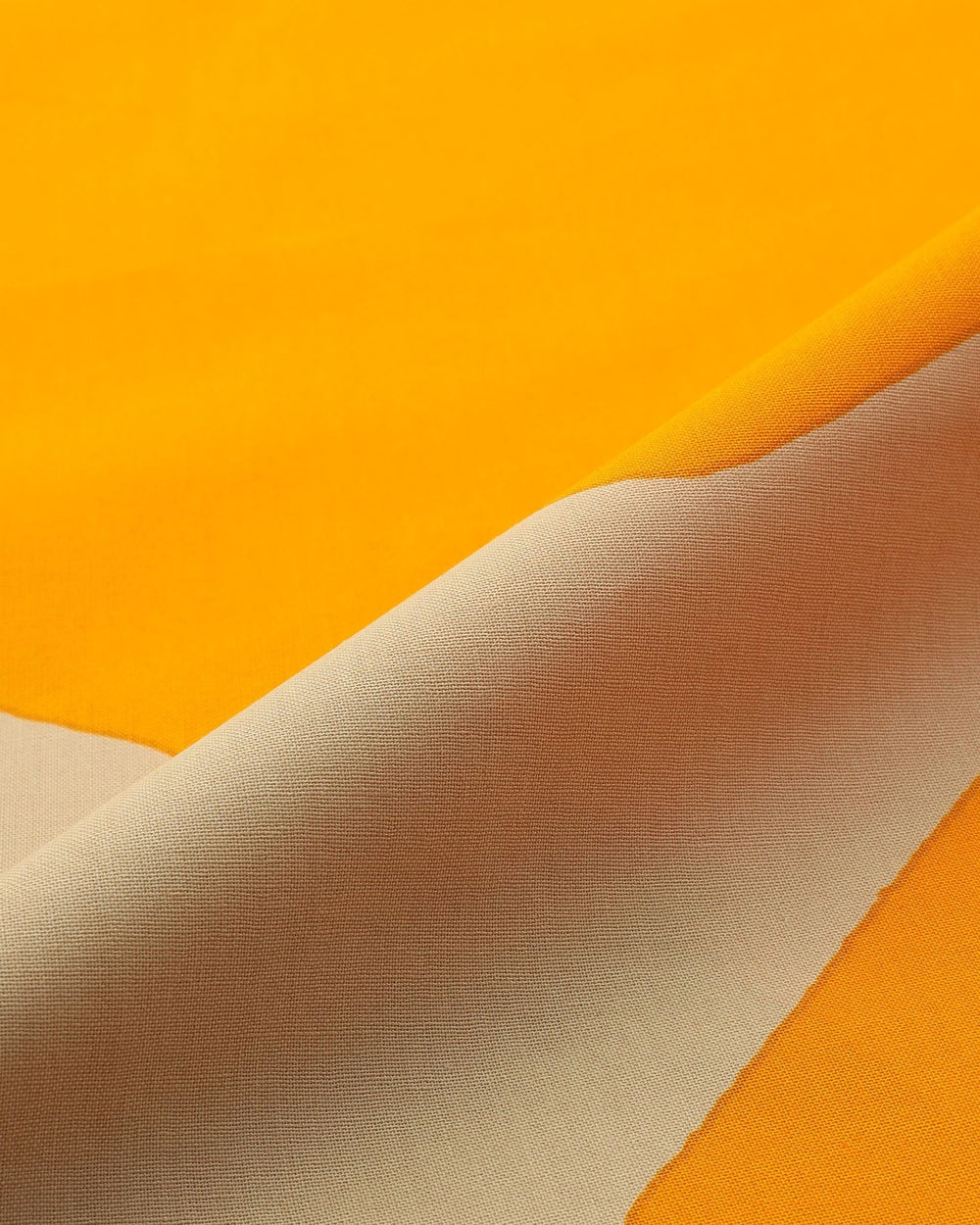 Printing large-print fabrics using the flatbed method leaves a repeat line at the edge of the pattern, and the prominence of this line depends on the fabric´s colour and pattern. The repeat line is not a flaw but a feature of the printing technique that can also be used as an effect.