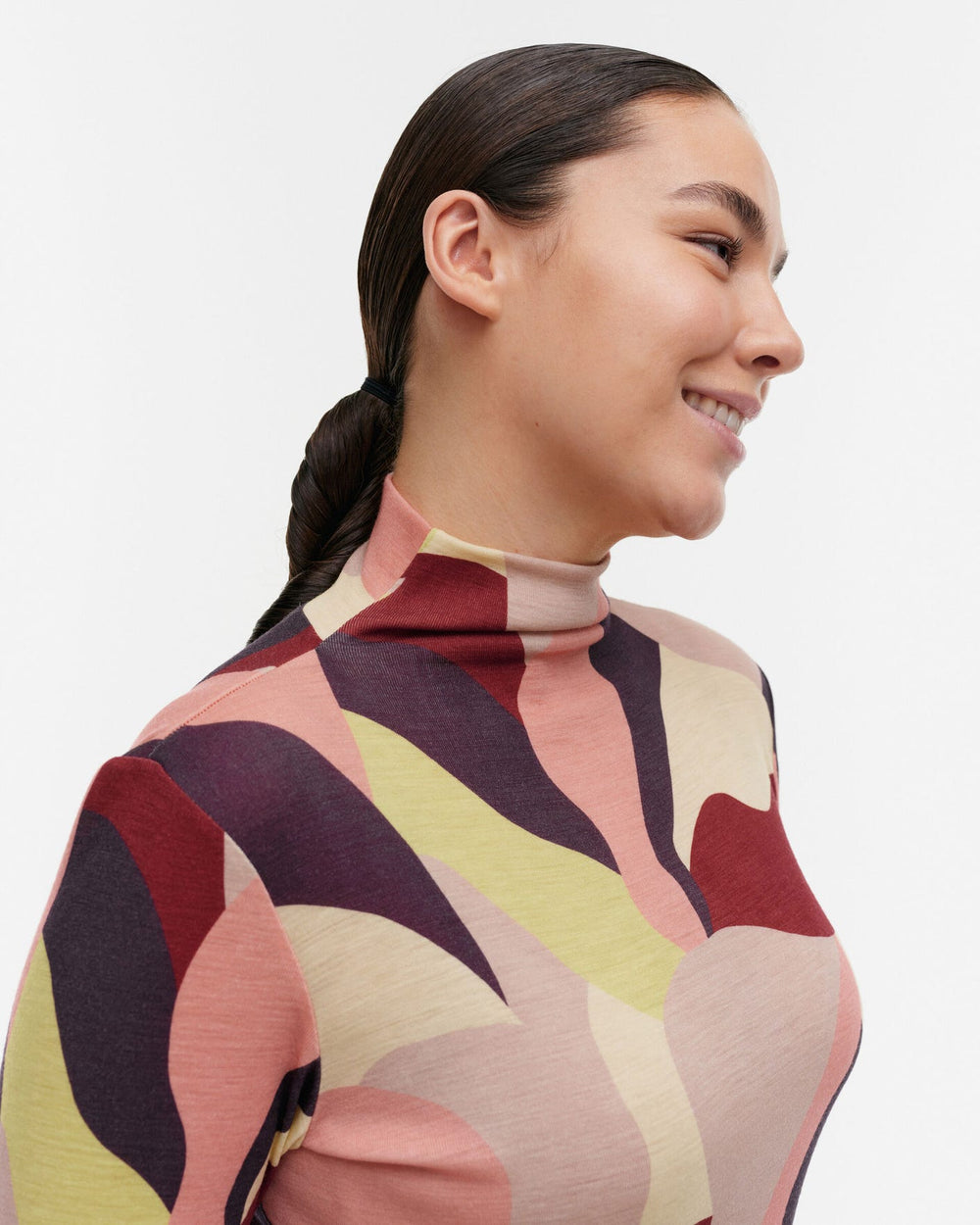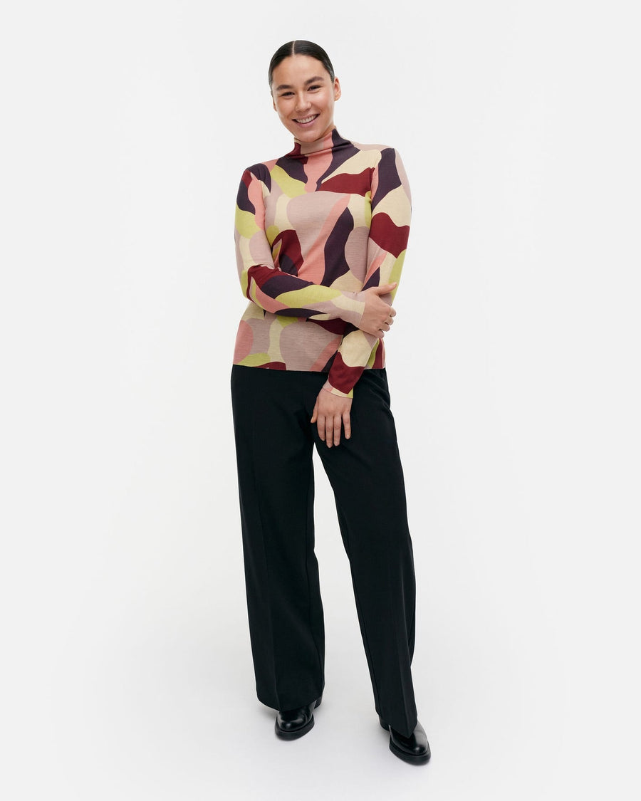 The abstract Kamelia (camellia) print combines organic shapes with a mesmerizing, layered rhythm. A master of many different styles and techniques, Fujiwo Ishimoto created countless hit designs for Marimekko over a period of four decades