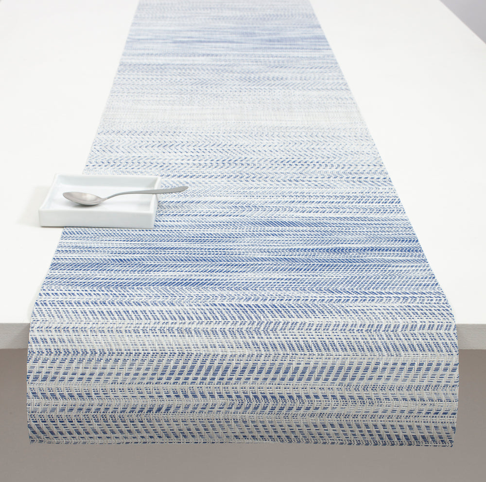 Based on a traditional twill construction, Wave achieves its striking ombré effect by gradually shifting weaves. Our signature bi-colour extruded yarns are woven in such a unique way that the colour seems to appear and disappear, breaking up the undulating lines. Wave is available in Blue and Grey, both woven with off-white yarns, and in White/Black. Suitable for indoor and outdoor use.