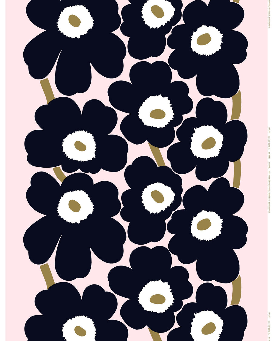 Designed by Paavo Halonen, the Torstai (Thursday) print is an outpouring of profusion, a luscious wild garden with peonies and roses. Colors and details were added through the design process, and the result is a pattern that almost smells like flower fields.
