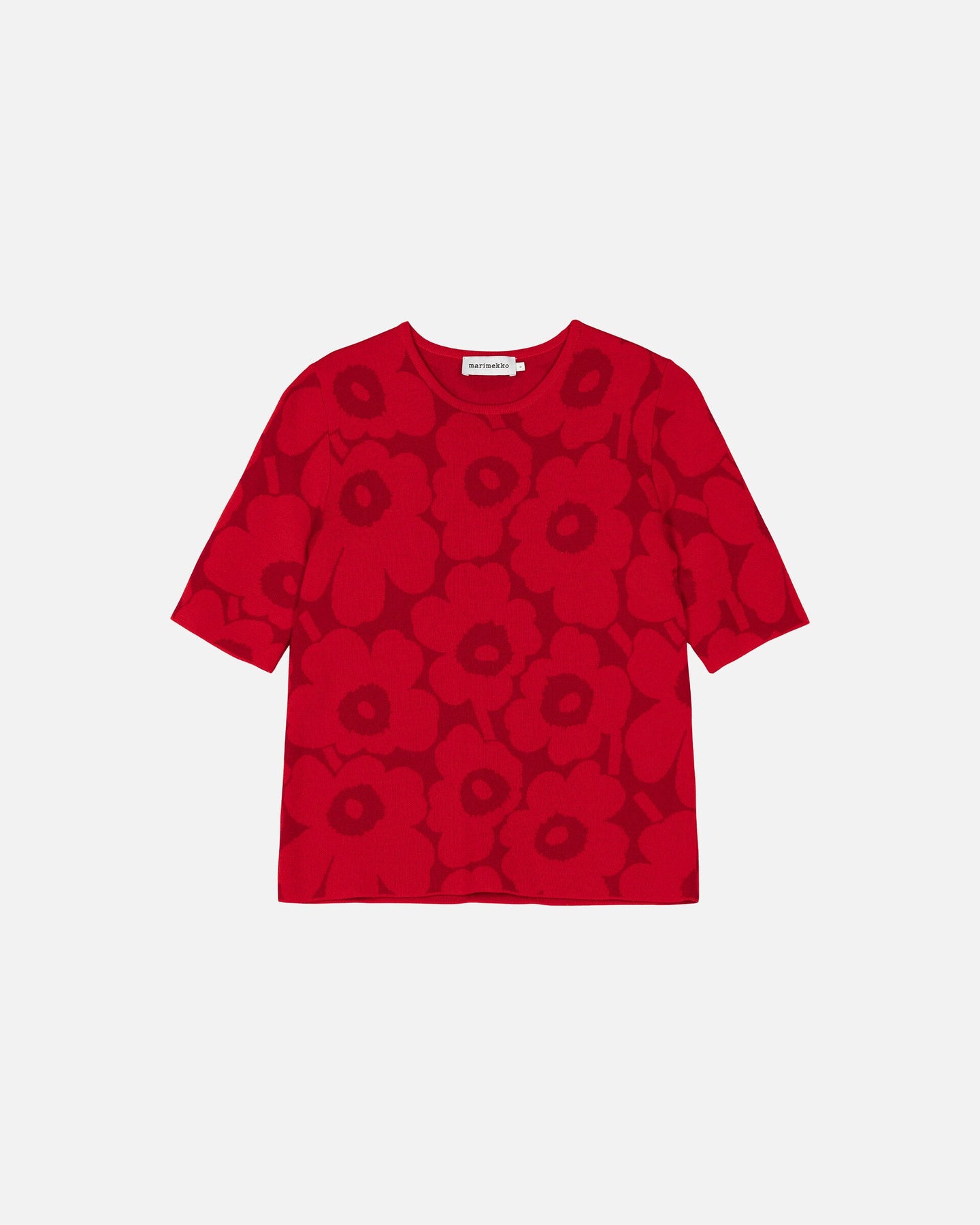 The Kehys top is made of certified merino wool, and it has a slim, straight fit. The top features the jacquard knit Unikko pattern, an O-neck with a rib finish, and slim, elbow-length sleeves.